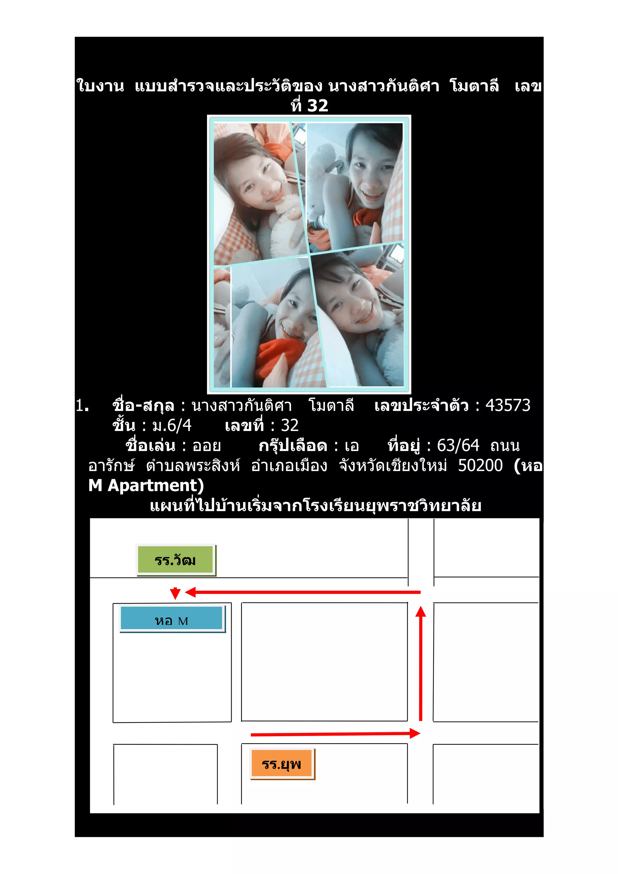 ใบงาน แบบสำารวจและประวัติของ นางสาวกันติศาโมตาลี เลข