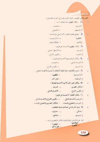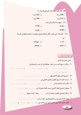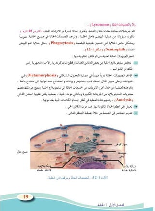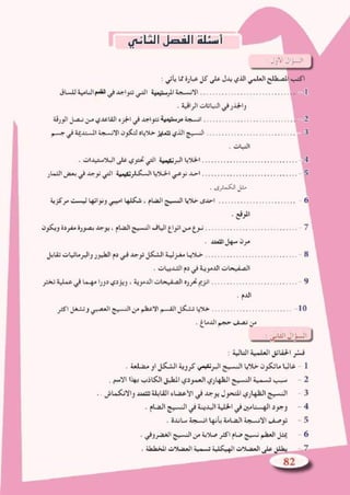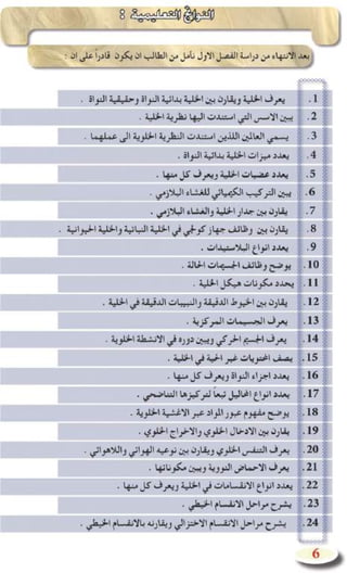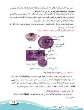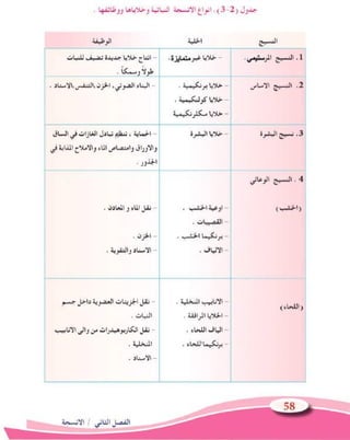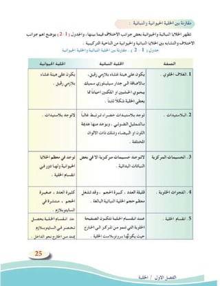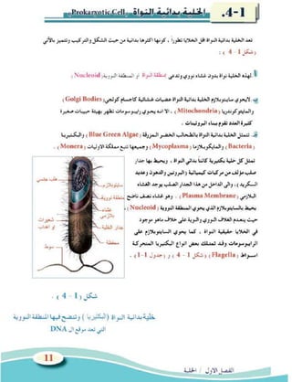 تناقش الوثيقة نظرية الخلية وأنواعها، بما في ذلك الخلايا بدائية النواة والخلايا حقيقية النواة. كما تتطرق إلى الأنشطة الخلوية وانقسام الخلايا، بالإضافة إلى اختلافات في الحجم والشكل بين الخلايا النباتية. تركز الوثيقة أيضًا على وظائف محددة للأنسجة في النبات والعمليات المرتبطة بالنمو.