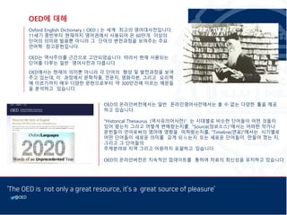 OED에서는 현재의 의미뿐 아니라 각 단어의 형성 및 발전과정을 보여