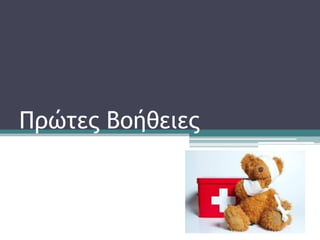 Πρώτες Βοήθειες Πξώηεο Βνήζεηεο είλαη ε άκεζε θαη πξνζσξηλή θξνληίδα πνπ παξέρεηαη ζην ζύκα ελόο αηπρήκαηνο ή ζε θάπνηνλ πνπ αξξώζηεζε μαθληθά, κέρξη ηελ κεηαθνξά ηνπ ζην Ννζνθνκείν. θνπόο καο είλαη ε δηαηήξεζε ηεο δσήο, ε πξόιεςε ηεο επηδείλσζεο ηεο θαηάζηαζεο, ε αλαθνύθηζε από ηνλ πόλν θαη ε βνήζεηα γηα αλάλεςε.