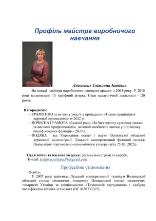 І. Левковець – Любешів:, ВСП « Любешівський ТФК ЛНТУ» 2022р