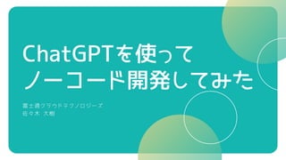 第63回ニフクラエンジニアミートアップ「エンジニアの仕事を変えるノーコード・ローコード活用入門」における、富士通クラウドテクノロジーズ株式会社の佐々木大樹によるセッション(LT)「ChatGPTを使ってノーコード開発してみた」のスライド