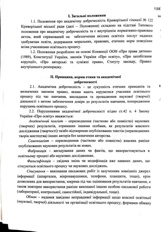 1.1. Положения про академiчну доброчеснiсть Криворiзькоi· гiмназii" № 122