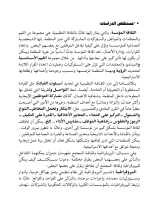 تتناول الوثيقة تأثير الثقافة التنظيمية على الأداء المؤسسي في الدول العربية، مشيرةً إلى العلاقة بين الثقافة والبيروقراطية. كما تناقش الأسباب وراء تأخر الدول العربية مقارنةً بالدول المتقدمة، وتطرح أسئلة حول إدارة الموارد والتغيير الثقافي. تُظهر العلاقة بين القيادة والثقافة التنظيمية كعوامل رئيسية لتحقيق التنمية المؤسسية.
