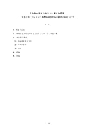 ࡣᴗάືࢆ⾜࠺ୖ࡛ࡢࡁ࡞㞀ᐖ࡞ࡿࡔࢁ࠺ࠋ ࡋࡋࠊᤕᤊ⠊ᅖࡀ᫂☜࡛࠶ࡿࡇࡼࡗ࡚ࠊ᪂♫௳࠾ࡅࡿ⾜Ⅽղࡢࡼ࠺ࠊ ㏻ᖖࡣ⊂⚗ἲ㐪࡞ࡽ࡞࠸⾜Ⅽࢆࠕྜࢃࡏᢏ୍ᮏ࡛ࠖ㐪⾜Ⅽࡍࡿࡇࡀ࡛ࡁࡓ⪃ ࠼ࡿࡇࡶ࡛ࡁࡿࠋᚲࡎࡋࡶᤕᤊ⠊ᅖࡀ᫂ࡽ࡛࡞࠸ࡇࡀ㈇ࡢせ⣲࡞ࡿࡣ㝈ࡽ࡞࠸ࠋ ᤕᤊ⠊ᅖࡢၥ㢟ࡣࠊබྲྀጤࡢ㔞ࡼࡿࡇࢁ࡞ࡿࠋࡢ᮲㡯࡛ࡣ⊂⚗ἲ㐪ࡣ࡛ࡁ ࡞࠸ࡀࠊ⊂⚗ἲ㐪⾜Ⅽࡋ࡚ᕷሙࡽྲྀࡾ㝖ࡃࡁ⾜Ⅽࠕྜࢃࡏᢏ୍ᮏࠖࢆ⏝࠸ࡿࡢ ࠊࡑࢀࡶࠊᴗ⪅ࡢⴎ⦰ࢆᘬࡁ㉳ࡇࡍࡼ࠺࡞㐠⏝ࢆࡍࡿࡢࠋᕷሙᏑᅾࡍࡿ㐪⾜ Ⅽࢆࡍ࡚ྲྀࡾ㝖ࡅࡤ⮬⏤࡞➇தࡀ☜ಖࡉࢀࡿ࠸࠺ࢃࡅ࡛ࡣ࡞ࡃࠊ㐪⾜Ⅽࢆᡭẁࢆ㑅 ࡤࡎࠕពᡴࡕࠖࡢࡼ࠺࡞᪉ἲ࡛ྲྀࡾ㝖ࡅࡤᴗάືࡣάⓎ࡞ࡾࠊ⤒῭ࡢᡂ㛗ࡣጉ ࡆࡽࢀࡿࡇ࡞ࡿࠋ⤖ᒁࠊࠕྜࢃࡏᢏ୍ᮏࠖࡢ㐠⏝ࡀ⮬⏤➇த⤒῭⛛ᗎࡢಁ㐍㈉⊩ࡍࡿ ྰࡣࠊබྲྀጤࡢ㔞࡚ጤࡡࡽࢀ࡚࠸ࡿゝࡗ࡚ࡶ㐣ゝ࡛ࡣ࡞ࡃࠊࡇࢀࡀࠕྜࢃࡏ ᢏ୍ᮏࠖ࠸࠺㐪⾜Ⅽࡢㄆᐃ᪉ἲ࠾ࡅࡿၥ㢟࡛ࡶ࠶ࡿࠋ 17 / 18 5. ⤖ ㄽ ࠕྜࢃࡏᢏ୍ᮏࠖࡣ୍యఱ࡞ࡢࠊࡢࡼ࠺࡞ሙྜ᭷ຠ࡞ㄆᐃ᪉ἲࡋ࡚⏝࠸ࡽࢀ ࡿࡶࡢ࡞ࡢࢆ᳨ウࡋ࡚ࡁࡓࠋ ➨ 4 ❶࡛㏙ࡓࡼ࠺ࠊࠕྜࢃࡏᢏ୍ᮏࠖࡀᚲせࡉࢀࡿሙྜࡣᐇົୖᑡ࡞ࡃ࡞࠸ࠋ ࡽᑟࡁฟࡋࡓ࠸ࡃࡘࡢࢩࢼࣜ࢜࠾࠸࡚ࡣࠊࠕྜࢃࡏᢏ୍ᮏࠖࡣࡑࡢ᭷⏝ᛶࢆⓎࡋ ࡚࠸ࡿࠋᤕᤊ⠊ᅖࡀ᫂☜ᐃࡵࡽࢀ࡚࠸࡞࠸ࡽࡇࡑࠊᰂ㌾࡞㐺⏝ࡼࡾࠊ⊂⚗ἲ㐪 ࡞ࡽ࡞࠸ࡣࡎࡢ⾜Ⅽࢆ 2 ᮲ 5 㡯࡛⿵㊊ࡍࡿࡇ࡞ࡀྍ⬟࡞ࡗ࡚࠸ࡿࡢ࡛࠶ࡿࠋࡋࡋࠊ ࡑࢀࡣ㛗ᡤ࡛࠶ࡿྠ▷ᡤࡶ࡞ࡾ࠺ࡿࠋࠕྜࢃࡏᢏ୍ᮏࠖࡢ⿵㊊⠊ᅖࡀ᫂ࡽ࡛࡞࠸ ࡓࡵࠊᴗ⪅ࡀࡇࢀࡲ࡛ࡢἲ㐠⏝ࢆཧ⪃ࡋࠊබṇ࡞ྲྀᘬ᪉ἲ㐪࡞ࡿྍ⬟ᛶࡢࡳ ࢆᠱᛕࡋ࡚ᴗάືࢆ⾜࡞ࡗ࡚࠸ࡓࡋ࡚ࡶࠊබྲྀጤࡀࠕྜࢃࡏᢏ୍ᮏࠖࡼࡿ⚾ⓗ⊂༨ ࡢつไࡢ㐺⏝ࢆᏳ᫆⾜࠺ࡼ࠺࡞ࡗ࡚ࡋࡲ࠼ࡤࠊᴗ⪅ࡀࠊ⮬ࡽࡢ⾜Ⅽࡀබṇ࡞ྲྀᘬ ᪉ἲࡋ࡚つไࡉࢀࡿࡢࠊࡲࡓࡣ⚾ⓗ⊂༨ࡋ࡚つไࡉࢀࡿࡢࢆண ࡍࡿࡇࡣᅔ㞴 ࡞ࡾࠊ⤖ᯝࡋ࡚ࡑࡢᴗάືࢆⴎ⦰ࡏࡊࡿࢆ࠼࡞࠸ࠋࡑࡢ⌮⏤ࡣࠊ๓㏙ࡢ࠾ࡾࠊ ၟ௳ࡀࡇࢀ࠶ࡓࡿࠋ