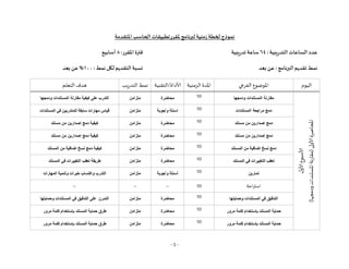 منيةز لخطة نموذج مل رقر الحاسب تطبيرقات املترقدمة : يبية التد الساعاتعدد 46 يبية تد ساعة : املرقرفترة 8 أسابيع بعد عن : البرنامجترقديم نمط : نمط لكل الترقديمنسبة 011 بعد عن % اليوم الفرعي املوضوع الزمنية املدة التقنية/ألاداة نمط يبرالتد التعلم هدف ل ألاو ألاسبوع ( ألاولى املحاضرة ودمجها املستندات نة ر مقا ) ودمجها المستندات مقارنة 10 محاضرة متزامن كيفية على التدرب ودمجها المستندات مقارنة المستندات مراجعة دمج 10 وأجوبة اسئلة متزامن المستندات في للمتدربين سابقة مهارات قياس دمج مستند من إصدارين 10 محاضرة متزامن كيفية مستند من إصدارين دمج مستند من إصدارين دمج 10 محاضرة متزامن كيفية مستند من إصدارين دمج المستند من اضافية نسخ دمج 10 محاضرة متزامن المستند من اضافية نسخ دمج كيفية المستند في التغييرات تعقب 10 محاضرة متزامن طريقة المستند في التغييرات تعقب تمارين 10 وأجوبة أسئلة متزامن المهارات وتنمية خبرات واكتساب التدرب احةراست 10 -- -- -- وحمايتها المستندات في التدقيق 10 محاضرة متزامن وحمايتها المستندات في التدقيق على التمرن مرور كلمة بإستخدام المستند حماية 10 محاضرة متزامن مرور كلمة بإستخدام المستند حماية طرق مرور كلمة بإستخدام المستند حماية 10 محاضرة متزامن مرور كلمة بإستخدام المستند حماية طرق