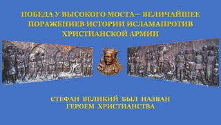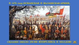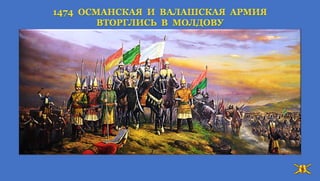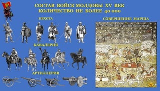 Альбом I - это приложенем к книгам по истории Молдавского государства "ИСТОРИЯ-ЗЕМЛИ-МОЛДАВСКОЙ-Часть-I", "РУМЫНИЯ. ИСТОРИЯ НАЦИОНАЛИЗМА ФАШИЗМА" Стефан Великий с исторической точки зрения, это самая прославленная личность молдавского народа, он сохранил государство, завоевавшие заслуженный авторитет в этой части Европы. Молдавская армия в сочетании с продуманной внутренней политикой и гибкой дипломатией была основным инструментом, который использовал Стефан Великий для защиты независимости страны.