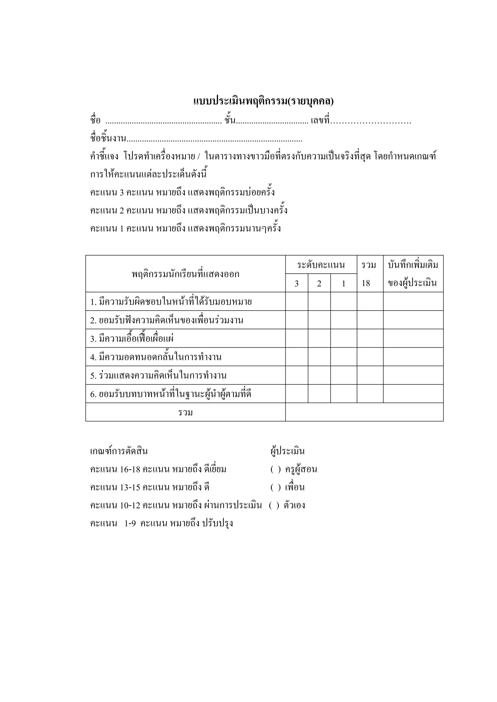 PDF format แบบประเมินพฤติกรรมการทำงาน2013 ในวิชาภาษาอังกฤษ ระดับชั้นมัธยมศึกษาปีที่ 5 ผู้สอน นางกฤตยา ศรีริ