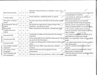 Fernanda attended all classes throughout the semester and completed all assignments on time, though sometimes forgot to print materials or was late. She showed a positive attitude but struggled with quizzes and could improve her fluency. While her writing skills improved from a 6 to an 8 out of 10, she recognizes the need to continue practicing to maintain her skills for academic and career purposes.