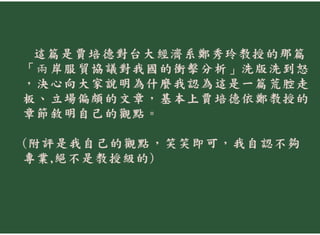 賈培德對鄭秀玲教授的那篇「兩岸服貿協議對我國的衝擊分析」的觀點