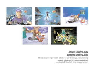 This document contains summaries of advertising campaigns created by the agency Wizard Polska for various clients: