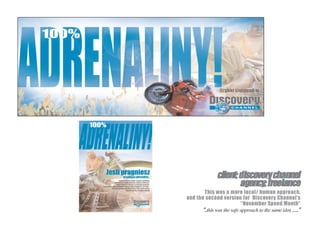 1) A campaign for Discovery Channel featuring a "terror" chasing a man through the forest to promote escaping the evils of autumn.