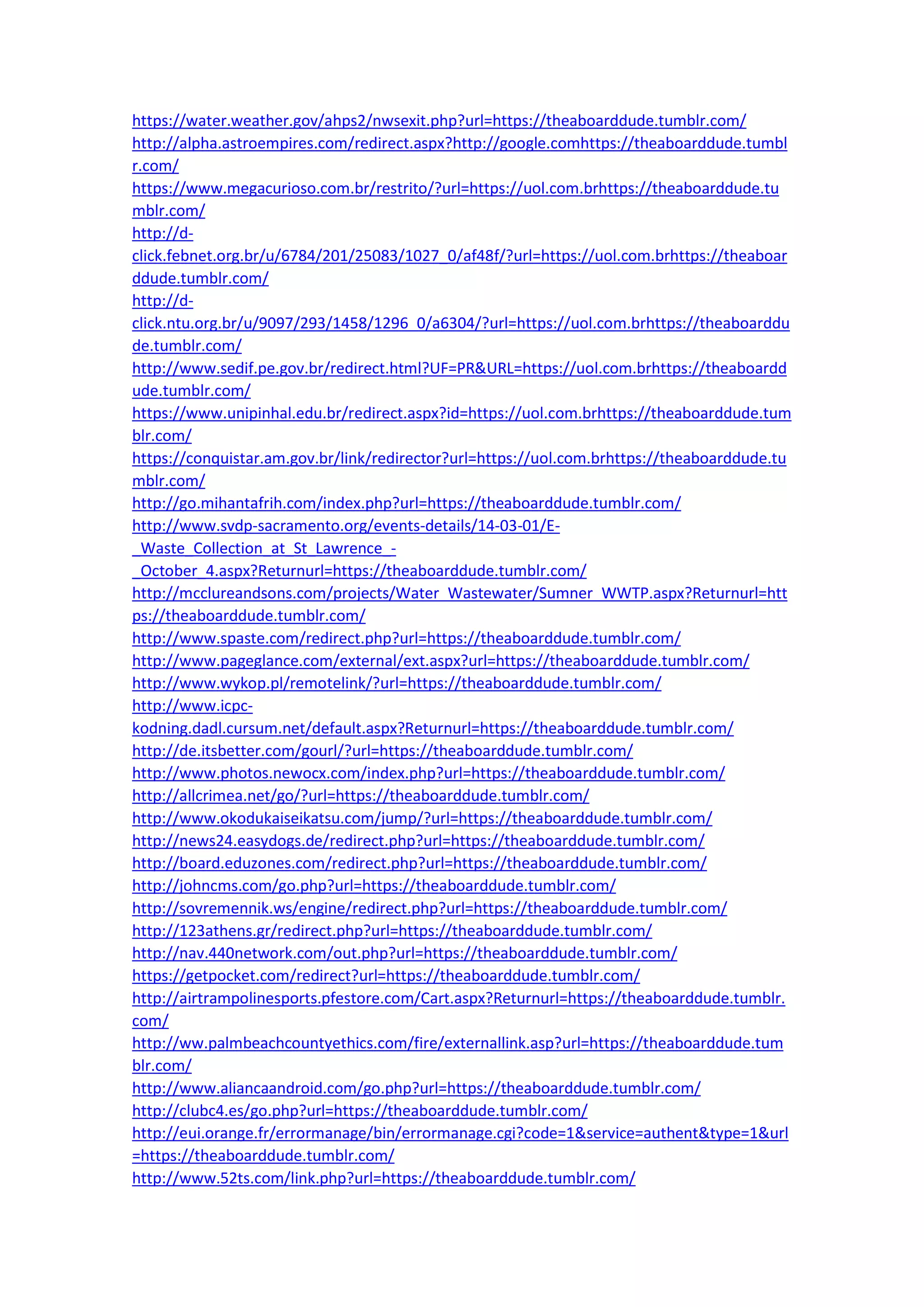 The document contains a long list of URLs linking to the same tumblr page: https://theaboarddude.tumblr.com/. The URLs are from various domains and appear to be redirects or references to that tumblr page from other sites on the internet.