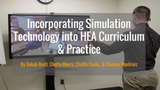 The document proposes incorporating the TeachLivE simulation technology into the Higher Education Administration (HEA) curriculum and practice at Buffalo State. TeachLivE allows students to practice skills like counseling, advising and classroom management with virtual students in a low-risk environment. It also facilitates reflection. The document outlines how TeachLivE aligns with HEA's learning outcomes and could be applied in courses. It proposes a pilot program to assess student experience and learning to determine how best to integrate TeachLivE into the curriculum.