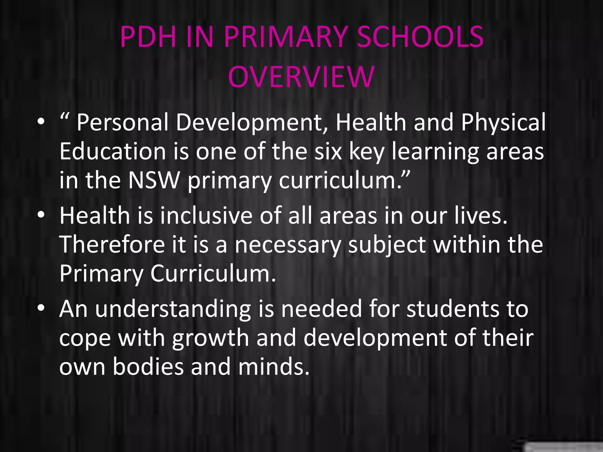 PDHPE within primary schools is an essential subject that develops life skills like social, physical, emotional, and psychological attributes. It covers personal development, health, and physical education, which are key areas of the NSW primary curriculum. The PDHPE curriculum teaches students how to make positive group contributions, accept others, make healthy lifestyle choices through nutrition and exercise, and deal with body changes during development.