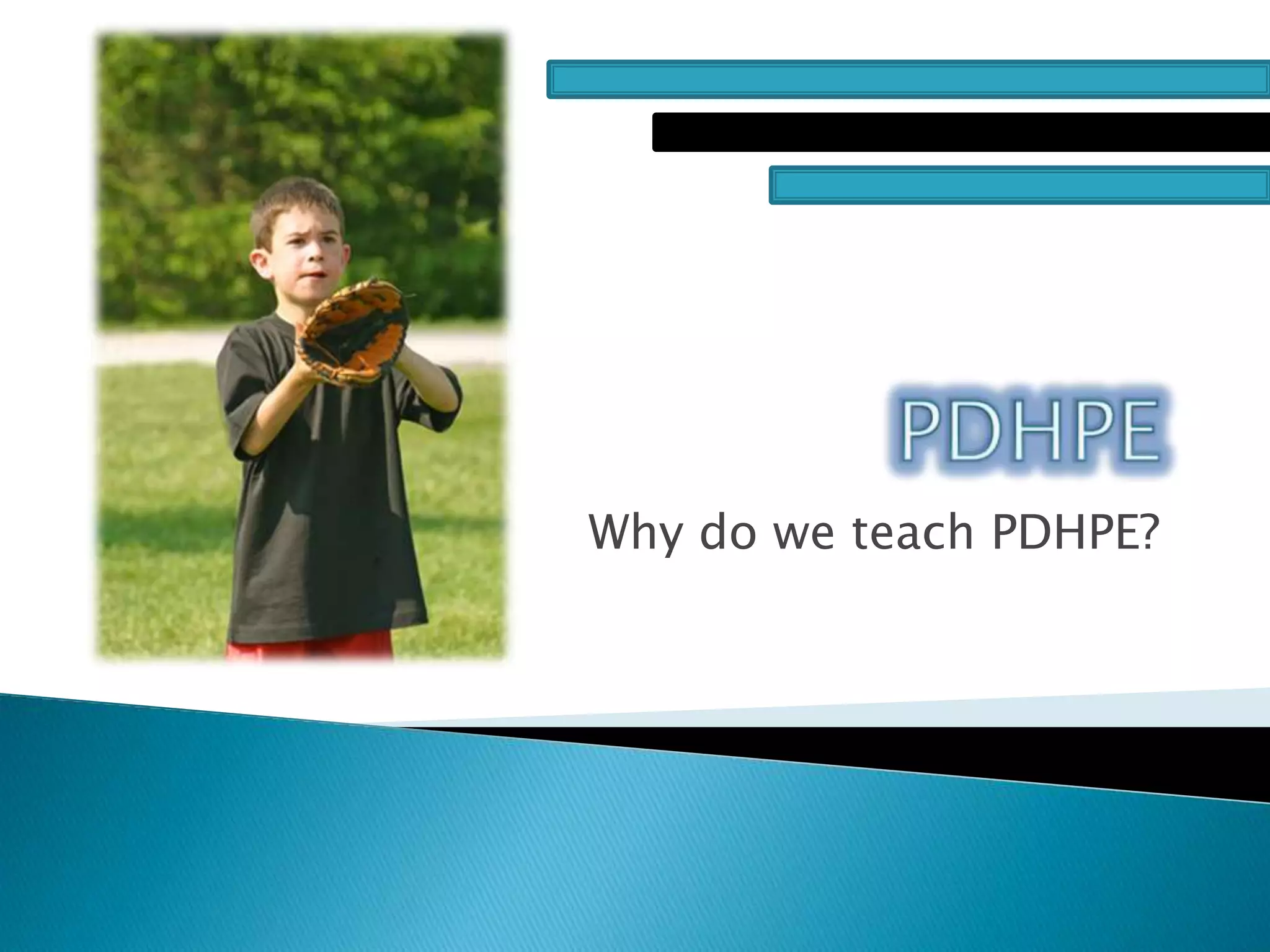 PDHPE is Personal Development, Health and Physical Education, a subject taught in primary schools across Australia to promote healthy, active lifestyles and prepare children for their future. It focuses on topics like healthy choices, safe living, active lifestyles, growth and development, and interpersonal relationships. PDHPE introduces important concepts about physical and mental development in a fun, engaging way for children and will continue to be essential for their growth and well-being.