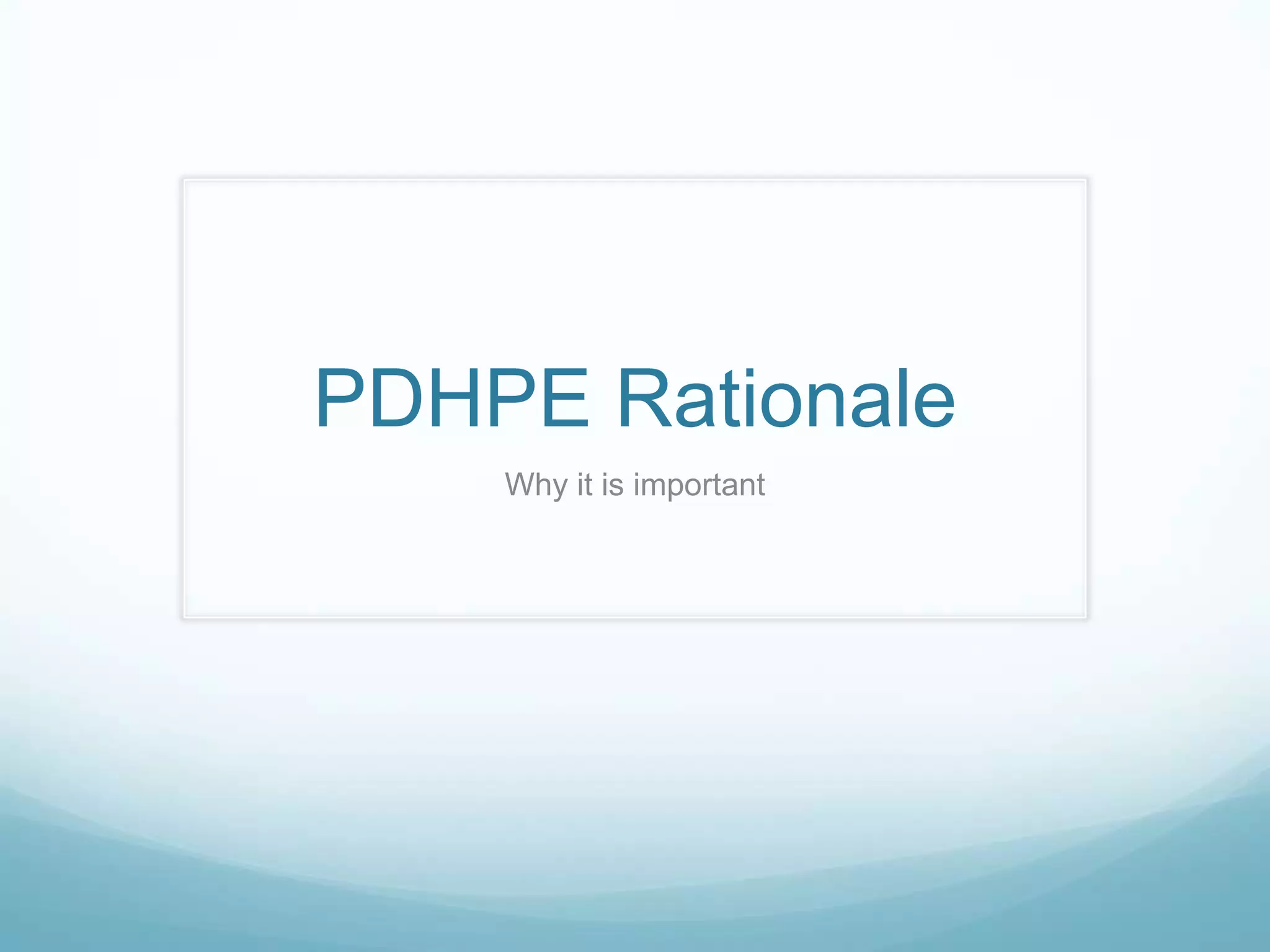 PDHPE (Personal Development, Health and Physical Education) is an important subject that promotes living a healthy lifestyle through both physical activity and personal growth. It focuses on developing students' understanding of their own physical, social, cognitive and emotional development as well as relationships. The subject matter includes active lifestyles, dance, games, sports, gymnastics, and interpersonal relationships, and teaches skills like moving, problem-solving, communicating, and decision-making. PDHPE aims to teach students what a healthy lifestyle entails and how to lead it over their six years of primary school.