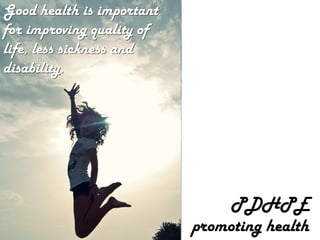 This document discusses the rational for teaching physical and health education (PDHPE) in primary schools. PDHPE promotes good health through physical activity and understanding oneself and others, which helps build positive relationships and decision making skills. These skills allow students to take responsible actions for their own health and well-being, and provide benefits such as improved concentration, opportunities for success, and general well-being that can last a lifetime.