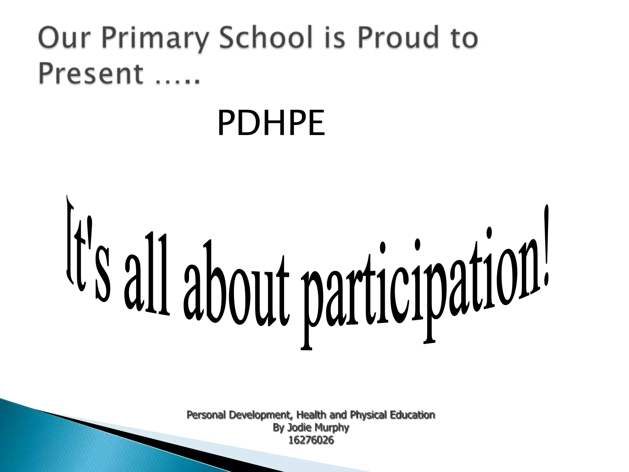 PDHPE is one of the six key learning areas in the NSW Primary Curriculum. It aims to equip students with the knowledge, skills, values, and attitudes to lead healthy and fulfilling lives. Students develop lifelong skills in areas like communication, decision making, and movement through exploring topics such as healthy choices, safe living, and active lifestyles that are relevant to their stage of development.
