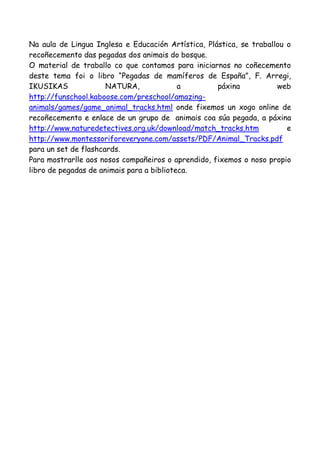 recoñecemento das pegadas dos animais do bosque.