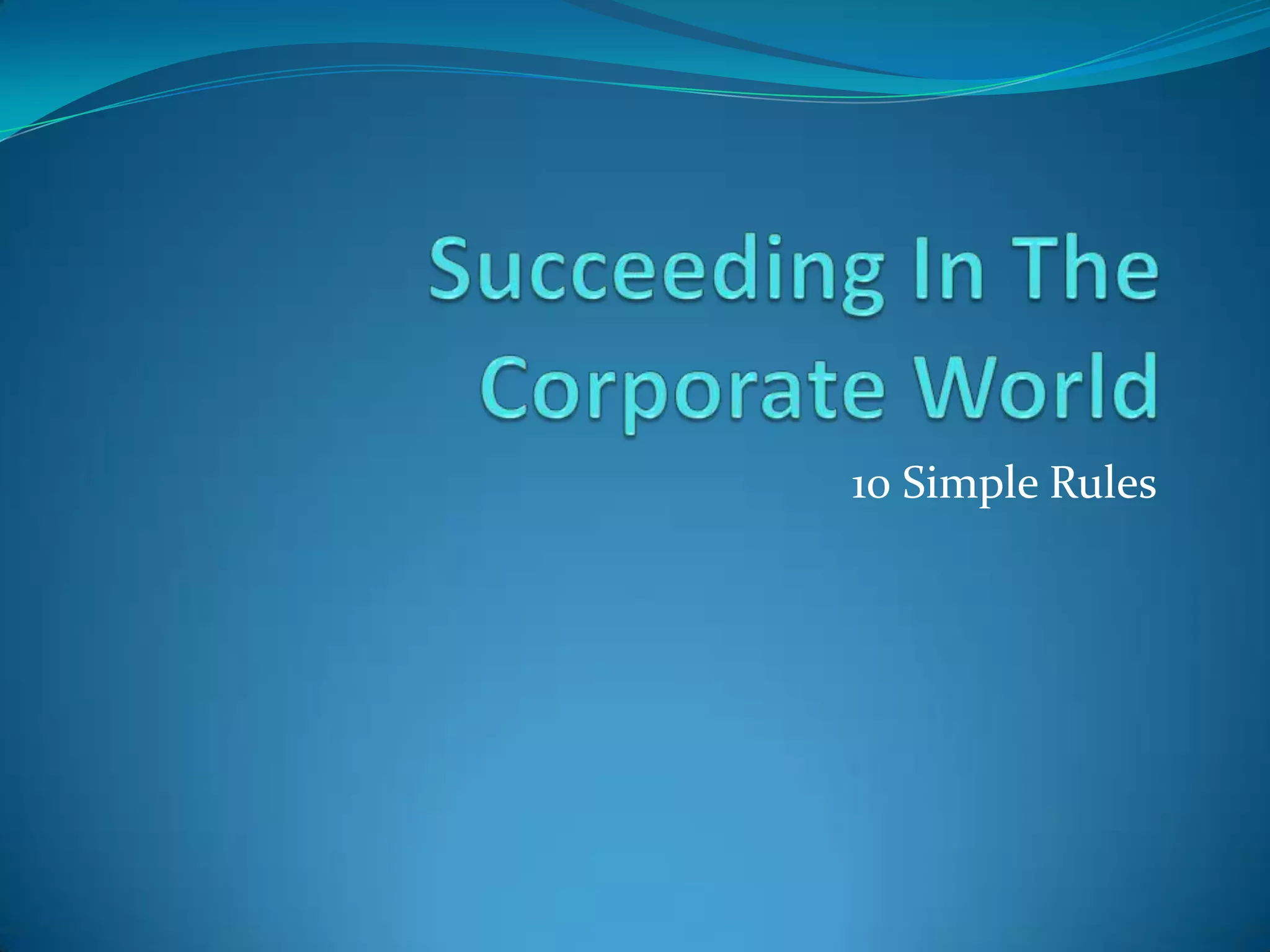 The document outlines 10 simple rules for achieving goals and success: 1) Set a clear goal; 2) Make a plan; 3) Understand reality and how industries work; 4) Research and analyze your chosen career path; 5) Know yourself and your surroundings; 6) Save money for the future; 7) Broaden your network of contacts; 8) Improve yourself through grooming and developing a confident attitude; 9) Have a backup plan in case your primary plan fails; 10) Seize opportunities when they arise. Following these 10 rules provides guidance on setting goals, planning, preparing financially and professionally, and adapting to challenges along the way.
