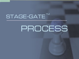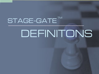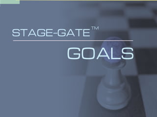 The document outlines a stage-gate model for managing a new product development process. It includes goals for the process, definitions of key terms like stages and gates, and descriptions of activities at each stage and criteria for passing through gates. The overall goal is to efficiently develop new products with a strong market and competitive focus through cross-functional collaboration and go/kill decision points.
