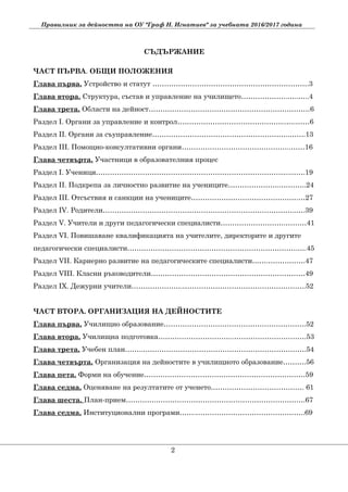 Правилник за дейносттана ОУ "Граф Н. Игнатиев" за учебната 2016/2017 година