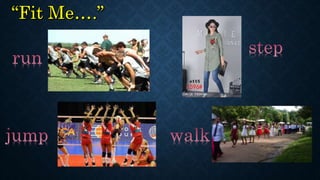 The document discusses different types of locomotor movements including stepping, walking, running, and jumping. It explains that locomotor movements allow the body to move from one point in space to another. Some key locomotor movements are defined as: