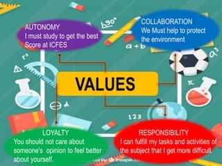 This document discusses modal verbs and values related to democracy and the environment. It lists modal verbs such as can, could, may, might, will, would, shall, should, ought to, must, and have to. It then discusses values like autonomy, collaboration, loyalty, and responsibility in relation to using modal verbs. For democracy, it provides definitions that democracy is government by the people for the people, and that democracy should be understood to preserve it and must allow every man to be heard. For the environment, it suggests that if the world was ending tomorrow, one would plant more trees, and that nature can do great things without human damage.