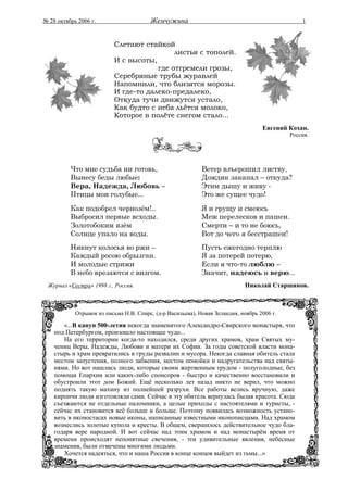 Документ представляет собой сборник литературных произведений и комментариев, в которых отражены темы природы, любви, национальной истории и культуры. В нем упоминаются как современные авторы, так и забытые поэты, чьи работы вновь вспоминаются и анализируются. Также подчеркивается важность восстановления исторических и культурных памятников в России.