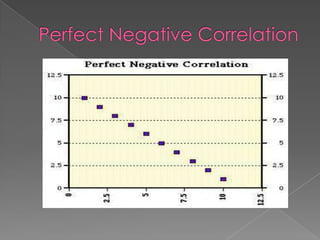 1. The document discusses the relationship between two variables and defines correlation coefficients ranging from 0 to 1 to indicate the strength of their relationship.
