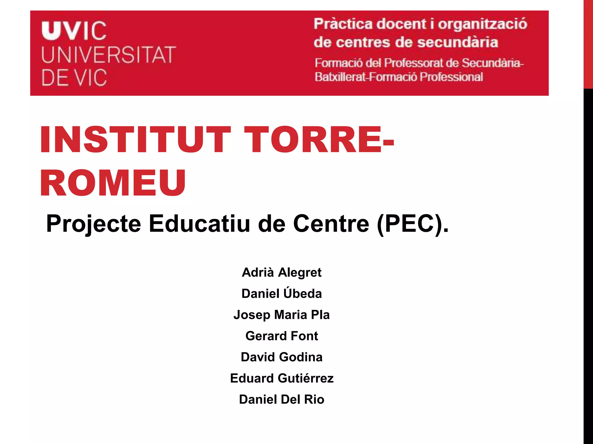 Projecte Educatiu deCentre (PEC).