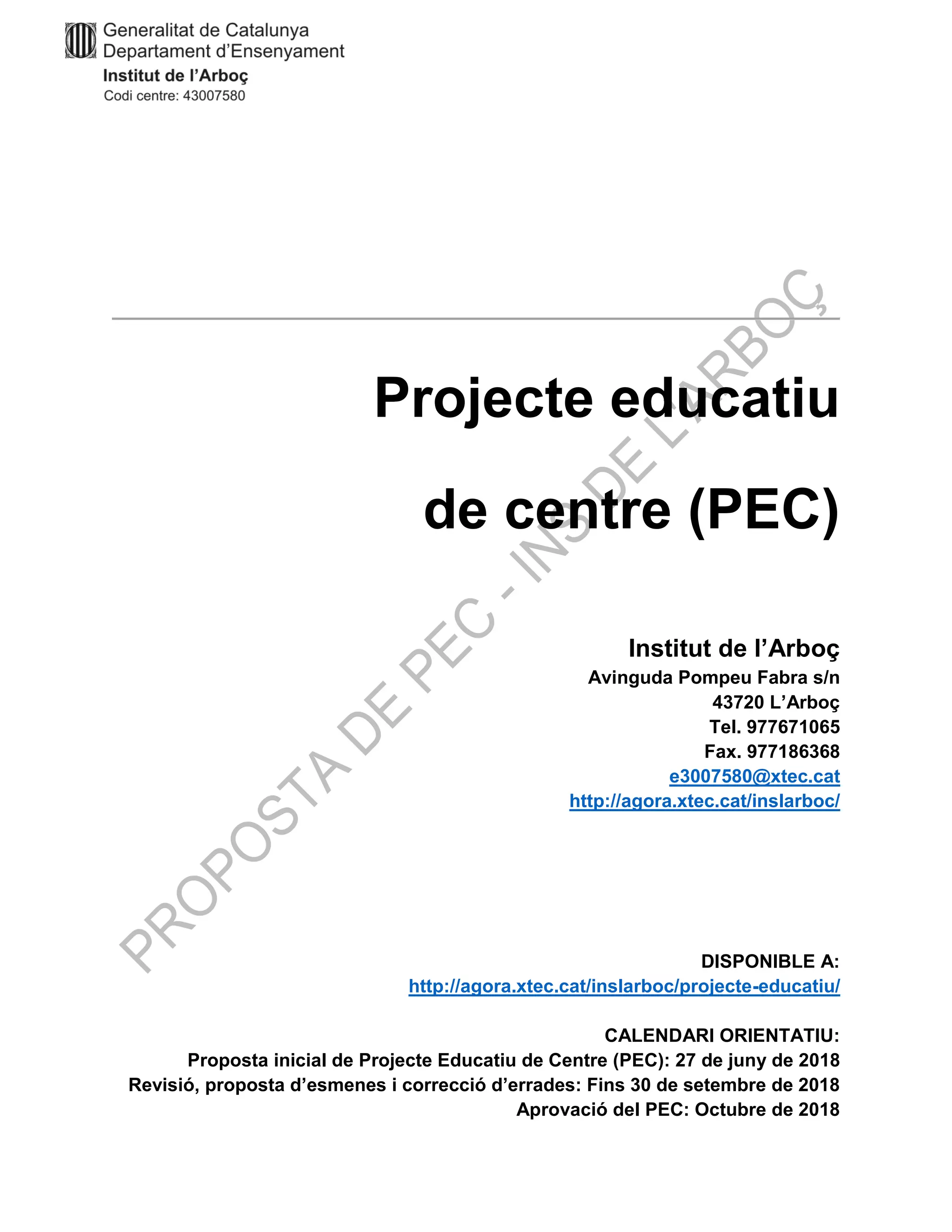 Proposta inicial de Projecte Educatiu de Centre (PEC): 27 de juny de 2018