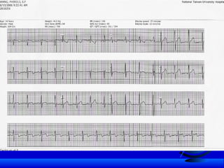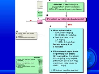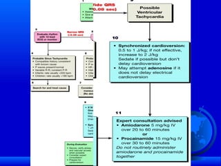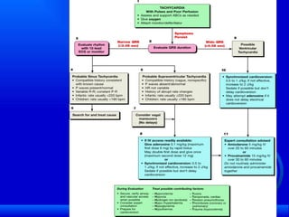 The document discusses various pediatric arrhythmias including tachycardias and bradycardias. It provides details on normal heart rates at different ages and describes common supraventricular tachycardias like AV nodal reentrant tachycardia, accessory pathway mediated tachycardias. It also discusses idiopathic ventricular tachycardia and management strategies for different arrhythmias including medication and ablation. Congenital complete heart block is described along with its association with maternal autoimmune conditions.
