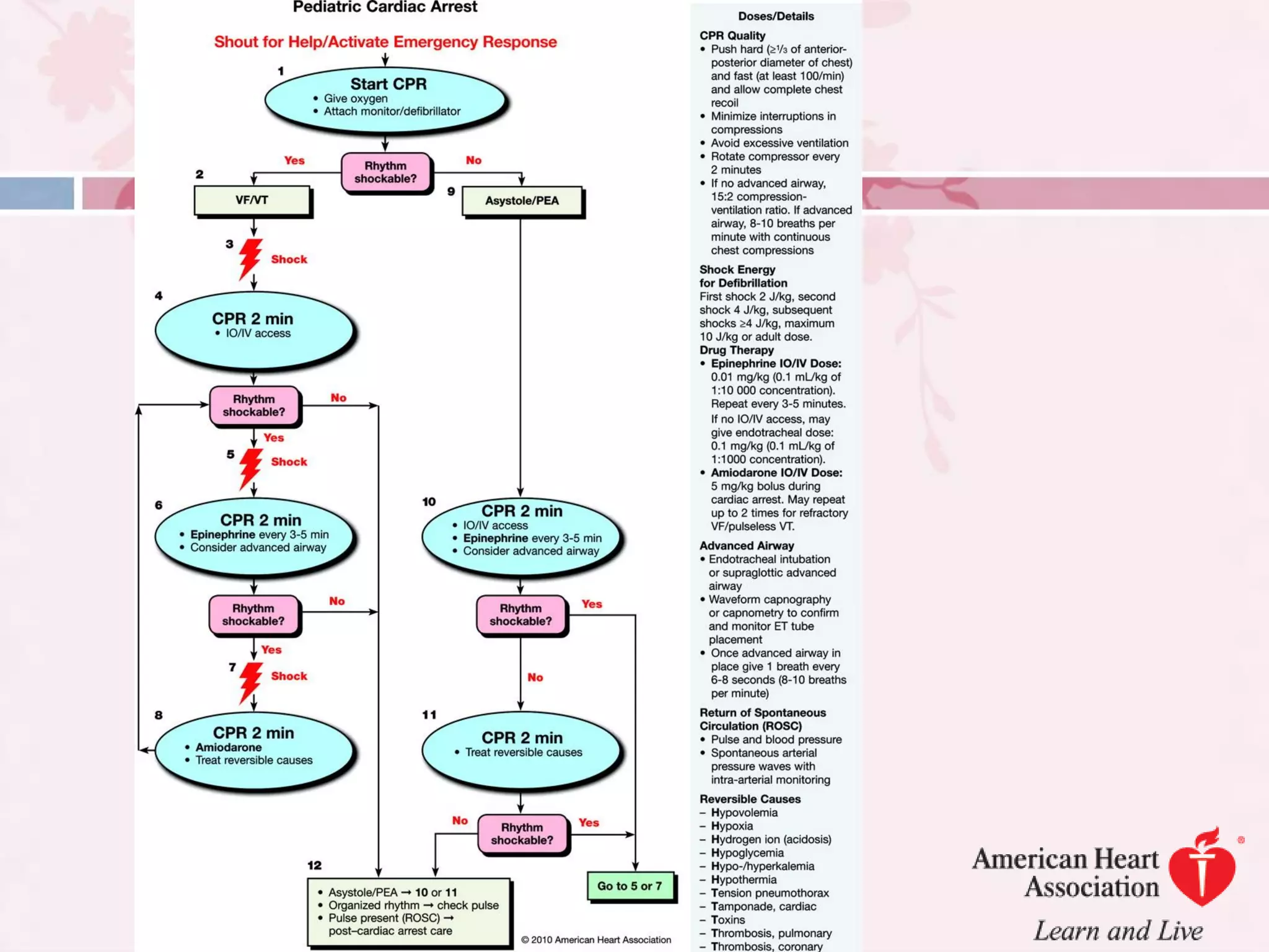This document summarizes pediatric basic and advanced life support. It outlines 5 key steps for pediatric basic life support: 1) prevent cardiac arrest, 2) early CPR, 3) prompt emergency response, 4) rapid pediatric advanced life support, and 5) integrated post-cardiac arrest care. Common causes of cardiac arrest in children include respiratory issues, burns, drowning, dysrhythmias, foreign body aspiration, gastroenteritis, sepsis, seizures, and trauma. The document also provides details on assessments, CPR techniques, airway management, defibrillation, and medications for cardiac arrest, bradycardia, and tachycardia in pediatric patients.