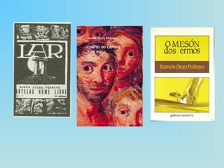 b) os libros de viaxes , como Pelerinaxes (1929), onde reseña a romaxe emprendida con Risco e outros galeguistas desde Ourense até o santuario de Santo André de Teixido, ou Por os vieiros da saudade (1952), que recolle a experiencia da súa primeira viaxe á Arxentina e o encontro coa diáspora galega en 1947. c) a semblanza biográfica , no Libro dos amigos (1953), en que con emoción e dor apaixonada vai recordando a trinta e nove personaxes xa falecidos que deixaron fonda pegada na súa vida, sen que falten as lembranzas de compañeiros galeguistas asasinados no 36 (Alexandre Bóveda, Ánxel Casal, Roberto Blanco Torres), ou. condenados ao exilio (Castelao).