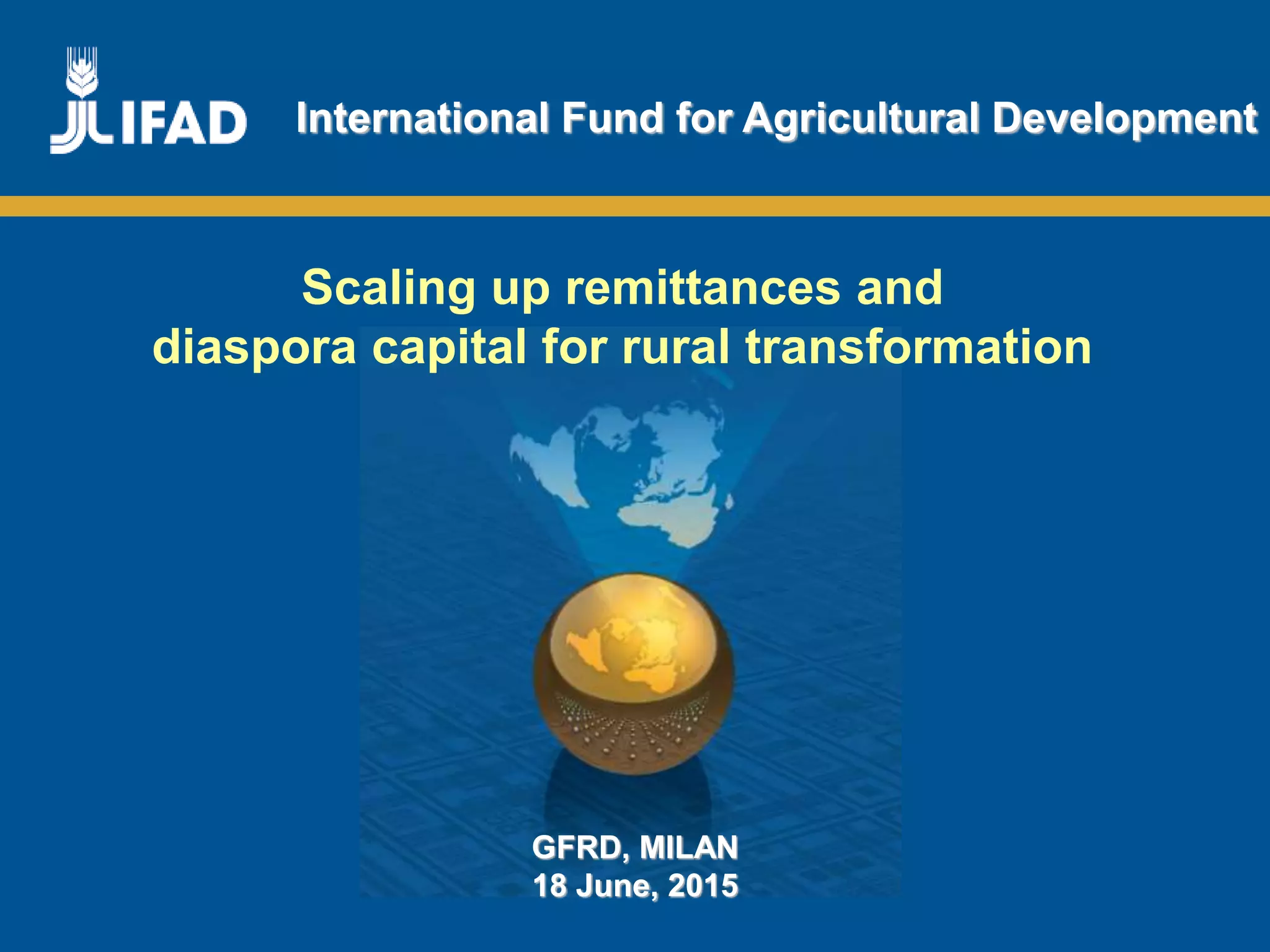 This document discusses strategies for maximizing the impact of remittances and migration. It recommends strengthening remittance markets through promoting competition, using intermediaries like microfinance institutions and postal services, and innovative models like mobile payments. It also suggests promoting financial inclusion through distribution channels, financial literacy programs, and cross-selling financial products. Finally, it proposes promoting investment of remittances and migrant savings through identifying investment opportunities, developing productive investment models like funds and bonds, and supporting skill development and entrepreneurship.