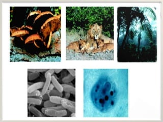 This science project outlines the five kingdoms of living things - animals, plants, fungi, bacteria, and algae and protists. Animals are multicellular organisms that feed on other living things, while plants make their own food but cannot move. Fungi can be uni- or multicellular, lack tissues and organs, cannot move, and eat other living things. Bacteria are the simplest organisms and can make their own food or eat other organisms. Algae can also be uni- or multicellular and make their own food.