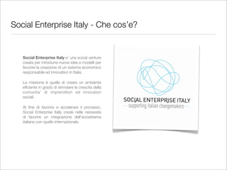 Social Enterprise Italy è una venture sociale dedicata a creare un ecosistema economico responsabile in Italia, promuovendo l'integrazione tra imprenditori sociali italiani e la comunità internazionale. Il programma 'Share and Learn' permette ai changemakers italiani di esplorare modelli imprenditoriali innovativi nel Regno Unito, fornendo opportunità di apprendimento peer-to-peer e networking. Durante un viaggio di tre giorni a Londra e Oxford, i partecipanti avranno accesso a conferenze, workshop e incontri con esperti del settore.