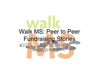Kathryn Goldsmith raises funds for Walk MS primarily through email. She personalizes her fundraising page and sends an email about 4-5 weeks before the walk to a wide network explaining why she walks and her fundraising goal. She includes her URL and instructions for mailing donations. She also uses letters and pre-addressed envelopes for some relatives. Social media tools from the MS Society help with fundraising on Facebook. She finds fundraising for a cause she is passionate about to be surprisingly easy.