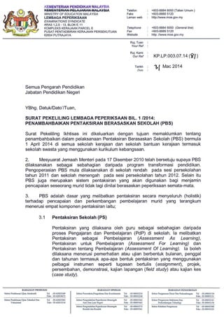 Surat Siaran Lembaga Peperiksaan, Pentaksiran Pusat Dalam PBS Menengah Rendah...