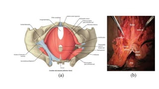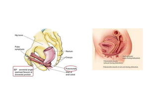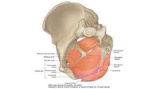 1. The pelvic floor is formed by the levator ani and coccygeus muscles. The levator ani is comprised of the pubococcygeus, iliococcygeus, and ischiococcygeus muscles.