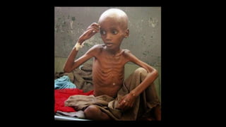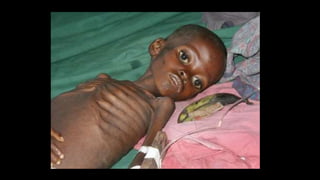 Nutritional disease can result from protein energy malnutrition (PEM), which is caused by inadequate intake of proteins and calories. PEM leads to deficiencies in digestion/absorption and loss of fat, muscle tissue, and weight. It has multiple etiologies including poverty, infections, illness, alcoholism, and ignorance. PEM is a serious, often lethal condition especially in children under 5 years old. It is diagnosed by body mass index, skin fold thickness, mid-arm circumference, and serum proteins. The two main types are marasmus, characterized by weight loss and depletion of muscle, and kwashiorkor, which occurs when protein deprivation exceeds calorie deficit and results in edema, skin lesions, and fatty liver.