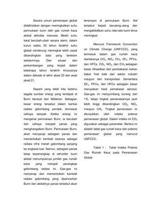 Dokumen ini membahas pemanasan global, penyebabnya, dan dampak aktivitas manusia terhadap perubahan iklim. Ditampilkan juga peran gas rumah kaca dalam peningkatan suhu bumi dan pentingnya pengelolaan untuk mengendalikan laju pemanasan. Selain itu, ada penekanan pada ketidakpastian dalam prediksi perubahan iklim dan dampaknya terhadap berbagai aspek kehidupan.