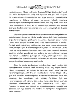 Pembelajaran berkhidmat dalam pendidikan sivik dan kewarganegaraan bertujuan untuk meningkatkan nilai patriotisme dalam diri pendidik dan murid melalui penglibatan aktif dalam projek kewarganegaraan. Melalui aktiviti seperti melukis mural dan memberi motivasi kepada masyarakat, guru dan pelajar dapat mengaplikasikan pengetahuan dan kemahiran sivik yang dipelajari. Objektif utama adalah untuk membentuk warganegara yang bertanggungjawab dan mencintai negara.