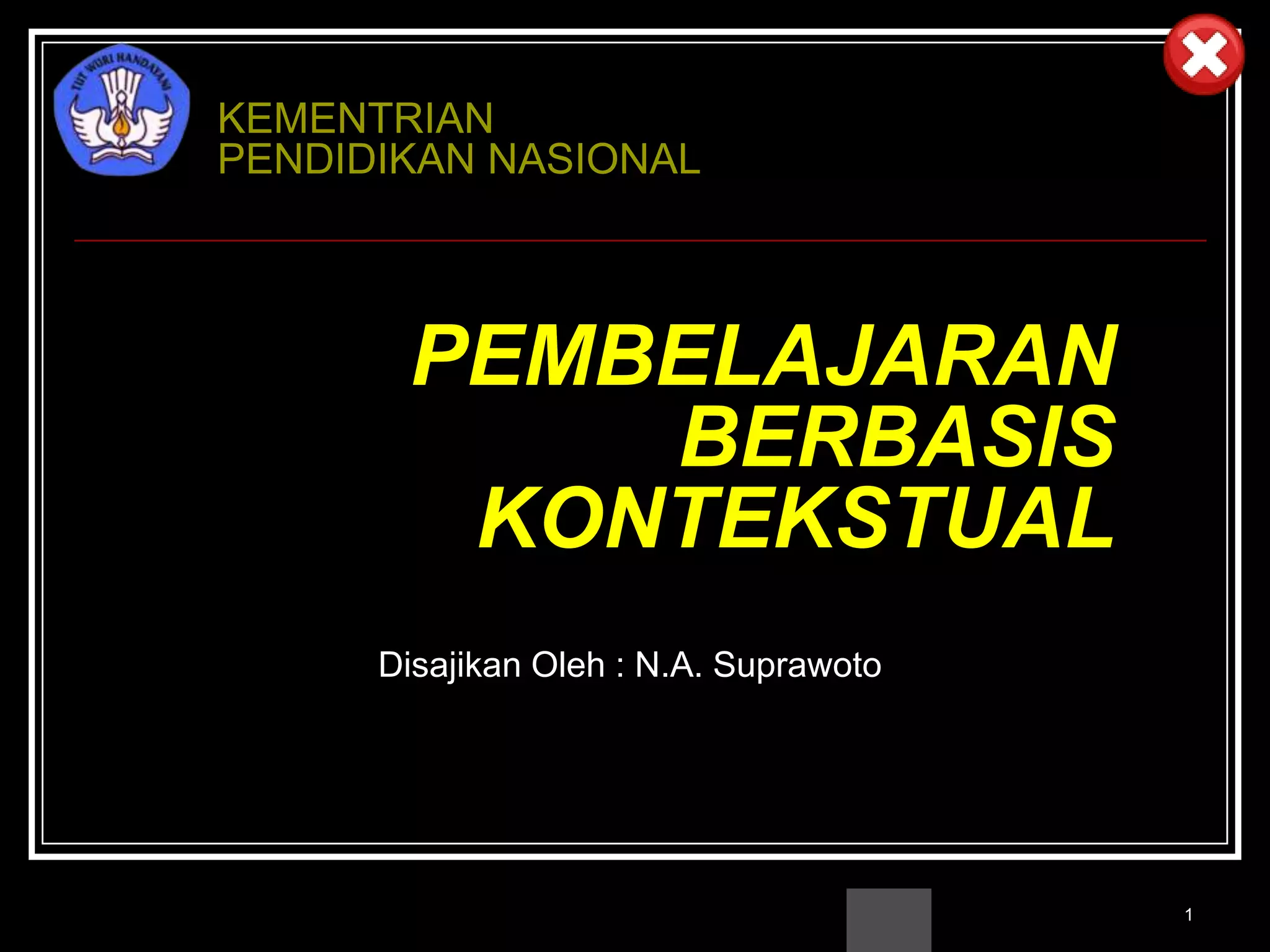 1. Dokumen tersebut membahas tentang pembelajaran berbasis kontekstual yang bertujuan untuk meningkatkan pemahaman siswa terhadap materi pelajaran dengan menghubungkannya dengan konteks kehidupan nyata.