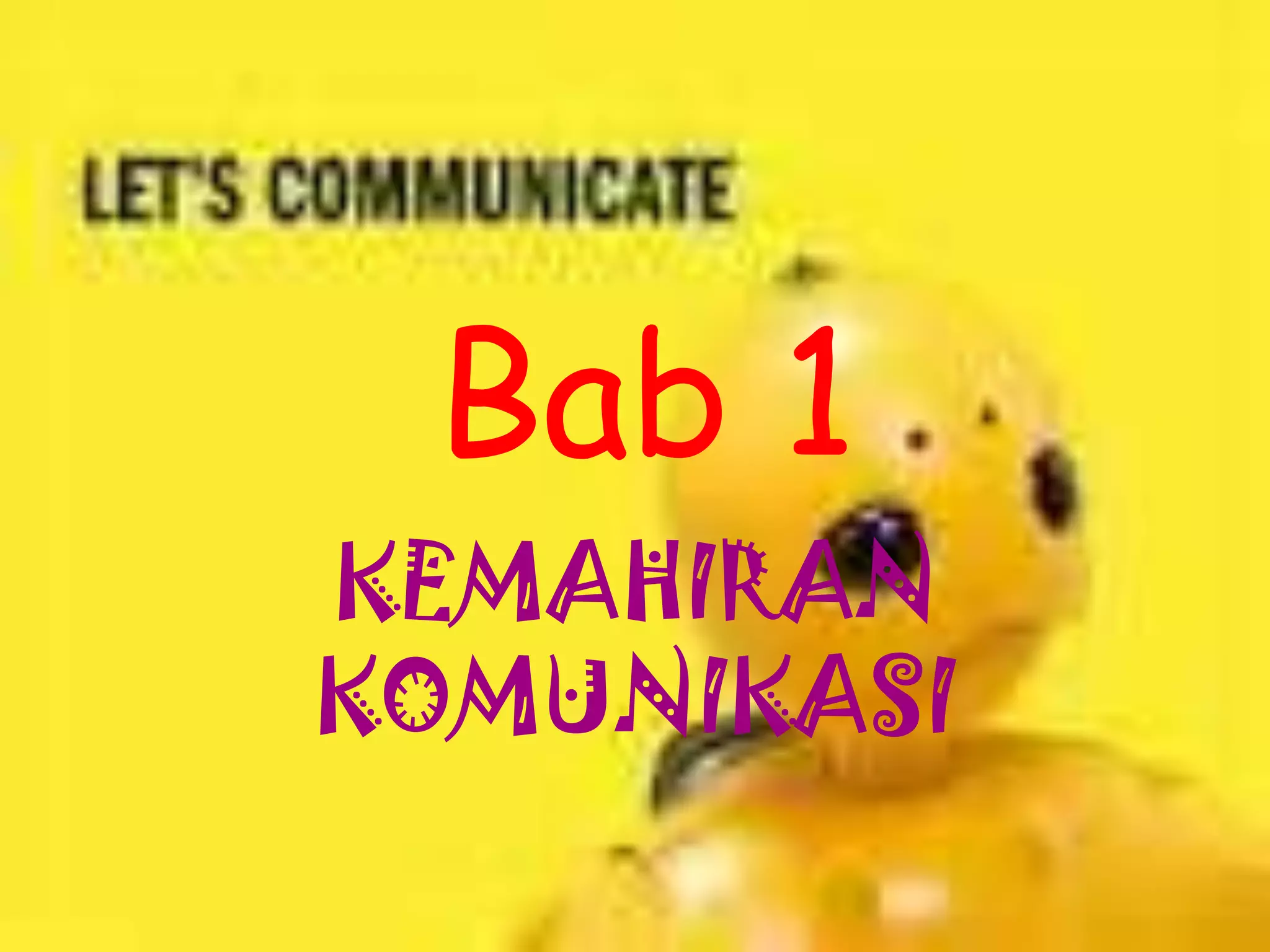 Bab 1 membahaskan tentang kemahiran komunikasi, model-model komunikasi, dan faktor-faktor yang mempengaruhi komunikasi. Beberapa model komunikasi yang dibincangkan termasuk model linear, interaksional, dan transaksional. Dokumen ini juga membincangkan jenis-jenis komunikasi seperti intrapersonal, interpersonal, berkumpulan, organisasi, berasaskan teknologi, dan awam. Halangan-halangan komunikasi seperti persekitaran, sikap, b