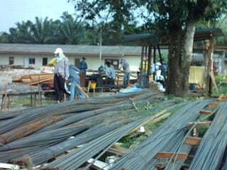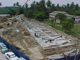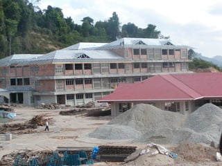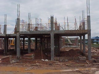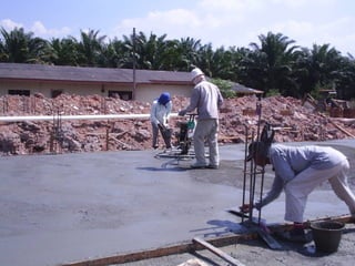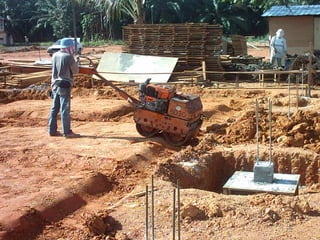 Dokumen ini merangkum kursus orientasi pengajian kejuruteraan awam yang diadakan di Kota Kinabalu, Sabah, pada Julai 2002. Ia menjelaskan tujuan dan proses pembinaan serta peranan pihak berkuasa dan kakitangan teknikal yang terlibat dalam setiap peringkat, dari perancangan hingga penyerahan projek. Juga diterangkan mengenai analisis tapak, pengambilan tender, dan pengurusan projek dalam industri pembinaan.