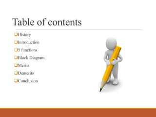 This document describes a pen-style personal networking gadget package called P-ISM developed by NEC consisting of 5 pens with different functions: a communication pen for wireless connectivity, a CPU pen for processing, an LED projector pen for display, a virtual keyboard pen for input, and a digital camera pen. The whole set connects to the internet through the communication pen's cellular connectivity and allows functions of a desktop computer to be performed on any flat surface. It aims to provide a portable computing solution.