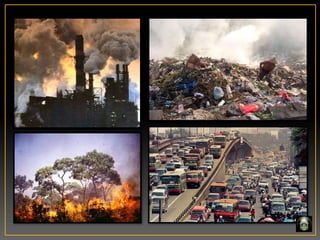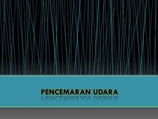 Dokumen tersebut membahas tentang pencemaran udara, sumber-sumber pencemar udara, dan dampak serta penanggulangannya. Sumber pencemar udara dapat berasal dari alam maupun aktivitas manusia, sementara dampaknya meliputi gangguan kesehatan, kerusakan lingkungan, dan perubahan iklim. Upaya yang dapat dilakukan antara lain mengurangi penggunaan bahan bakar fosil, pengolahan limbah asap, dan beralih ke teknologi